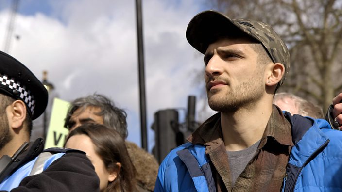 On the 15th of March – 30 days from the rebellion – we have the second of two school strikes shown. ‘Oh my God,’ Ben says, ‘that’s a lot of kids!’ Sam is here again, along with 11 year old Raffi, who is part of a group of young students whose aim is to deliver a letter to Claire Perry MP, at that time a Minister of State at the Department for Business, Energy and Industrial Strategy. When asked why he is there, Raffi says that ‘this is kind of our World War Three.’ You can feel the energy of the protest, and Ben almost gets caught in the eye by a placard waving in the air. Ben, who by this point seems more sympathetic to XR, says to a mounted policeman that ‘these are kids.’ The reply is that ‘they should be in school.’ I think we can all agree – including the students themselves – that yes, they should be in school. That they are not only emphasises the shameful inactivity of our governments and institutions.